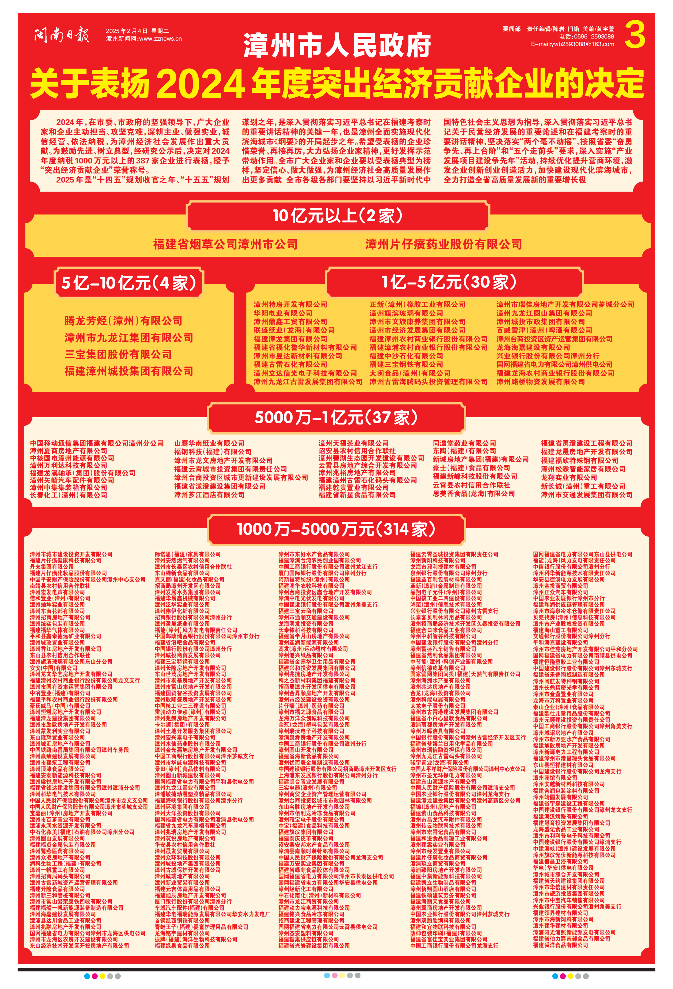 2月4日,漳州市人民政府表彰2024年度經濟貢獻企業,漳州市交通發展集團有限公司被漳州市人民政府授予“突出經濟貢獻企業”榮譽稱號,權屬企業漳州市通順交通建設有限公司同時上榜獲得表彰。